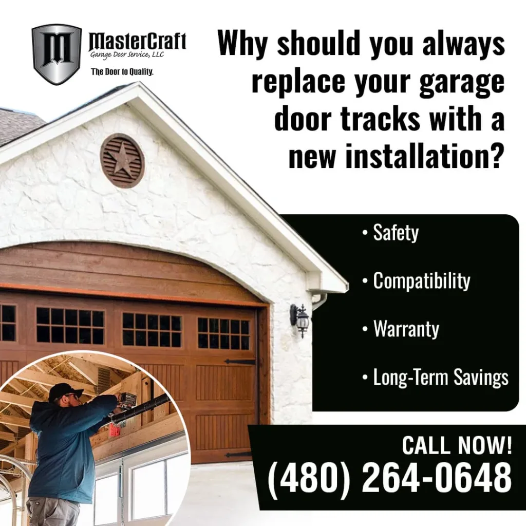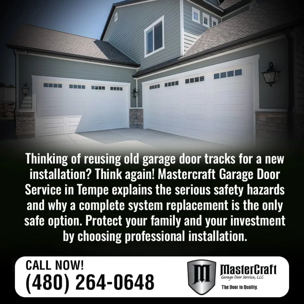 Don’t risk your family’s safety or void your warranty by reusing old garage door tracks. Call Mastercraft Garage Door Service LLC at (480) 264-0648 or email stuartjr@mc-doors.com for complete, professional garage door installation in Tempe and nearby areas.