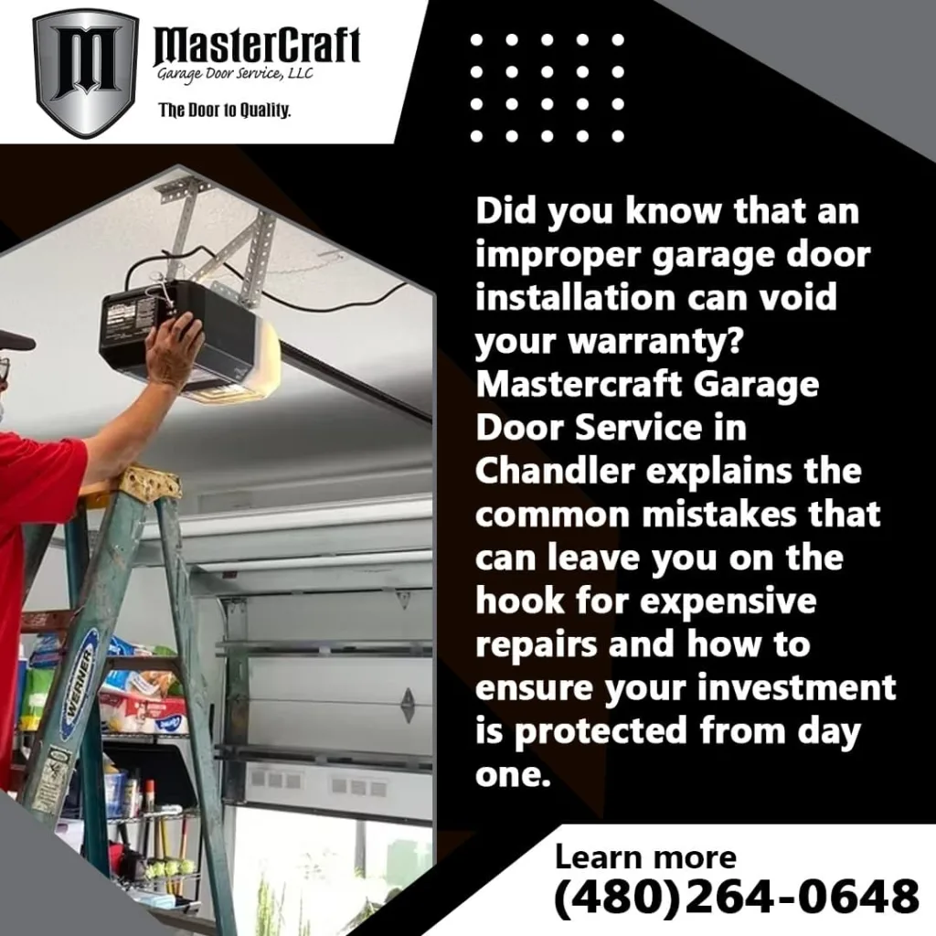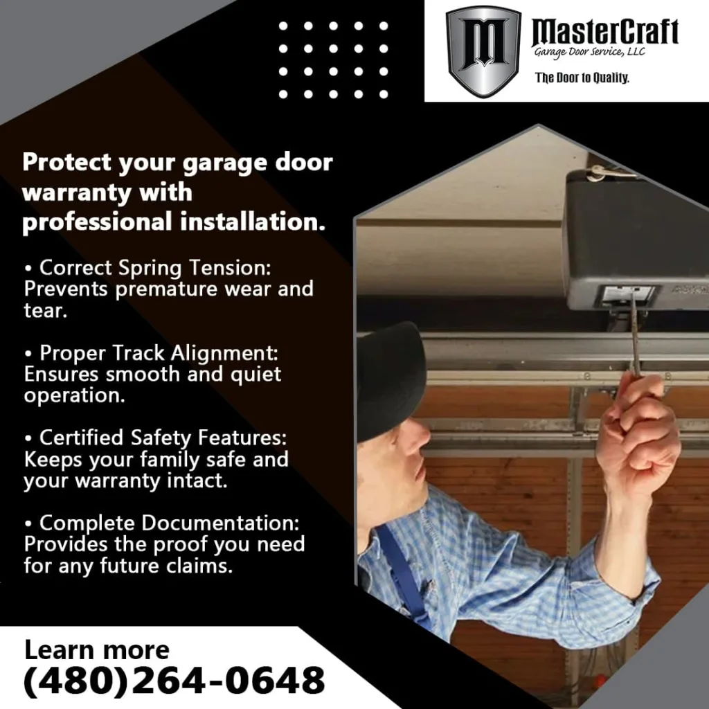 Protect your garage door warranty with professional installation from Mastercraft Garage Door Service LLC. Our licensed technicians have over 10 years of experience installing all major door brands throughout Chandler and the East Valley.